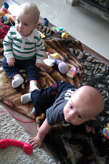 To było ich pierwsze spotkanie, Bartuś zachwycony nowym kolegą, a Filip zauroczony nowymi zabawkami. Na początku grzeczni, spokojni, a po chwili rozbrykani. Już było widać, jak się różnią, jak inne mają temperamenty, oczywiście każdy chciał tę zabawkę, którą akurat bawił się kolega :)